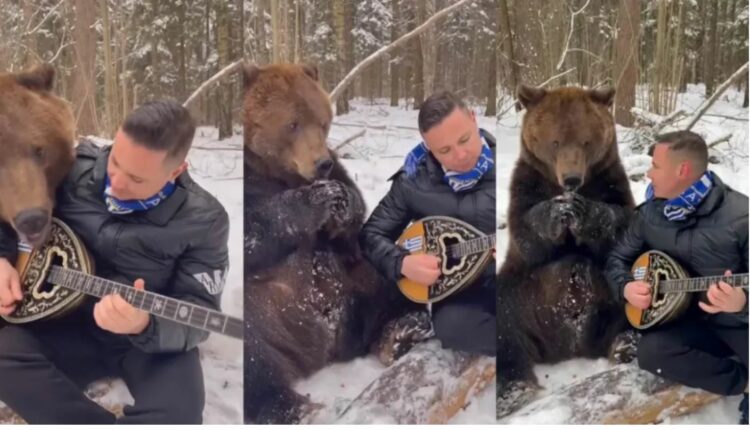 Viral έχει γίνει η ανάρτηση ενός Έλληνα μουσικού που αποφάσισε να παίξει μπουζούκι σε μια αρκούδα στη Ρωσία.