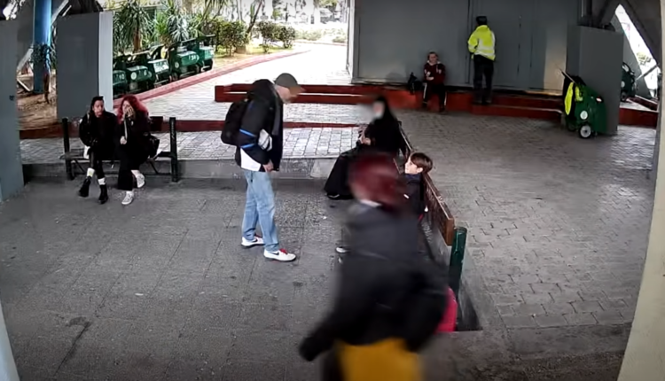 Όταν ο άνδρας προσπαθεί να πείσει τον μικρό που κάθεται σε παγκάκι να πάει μαζί του, μια γυναίκα που είναι δίπλα παρεμβαίνει και του λέει να αφήσει ήσυχο το παιδί. «Άφησέ τον σε παρακαλώ», του λέει με έντονο ύφος και στη συνέχεια τον απειλεί ότι θα φωνάξει την αστυνομία.