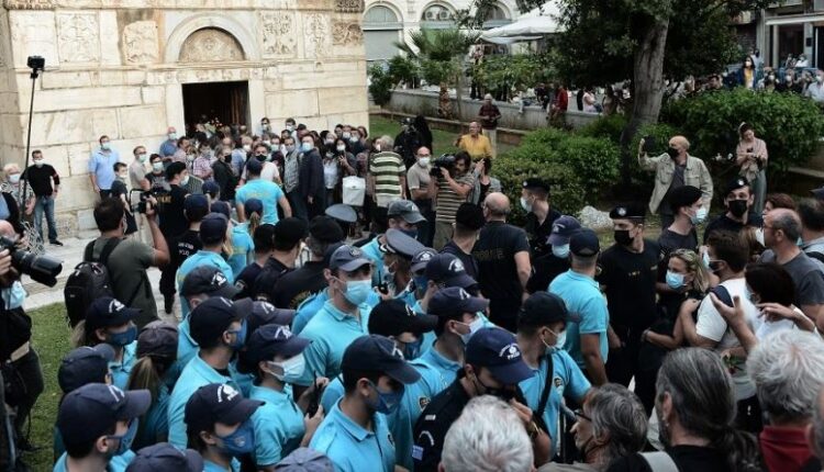 Διαμαρτυρίες σημειώθηκαν στη Μητρόπολη, όπου βρίσκεται σε εξέλιξη το λαϊκό προσκύνημα στη σορό του Μίκη Θεοδωράκη.
