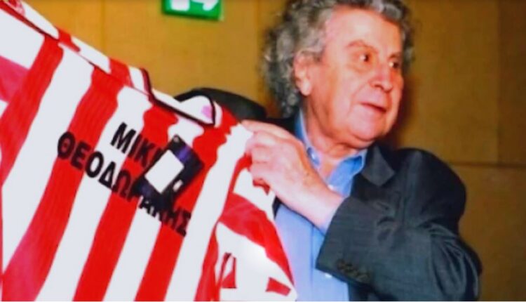 Ο Ολυμπιακός, το ποδόσφαιρο ήταν πάντα η συντροφιά του Μίκη. Ακόμη και στα σκληρά χρόνια της εξορίας και των διωγμών. Τα είδε, τα έζησε όλα στο κόκκινο. «Στη Μακρόνησο στη σκηνή μας ήμασταν μοιρασμένοι Ολυμπιακοί – Παναθηναϊκοί. Και όμως παλεύαμε μαζί για τα ιδανικά μας».