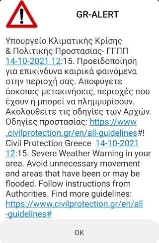 Ήδη, αποστέλλεται μήνυμα από το 112 σε κατοίκους για ιδιαίτερη προσοχή λόγω των καιρικών φαινομένων σε πολλές περιοχές της χώρας: