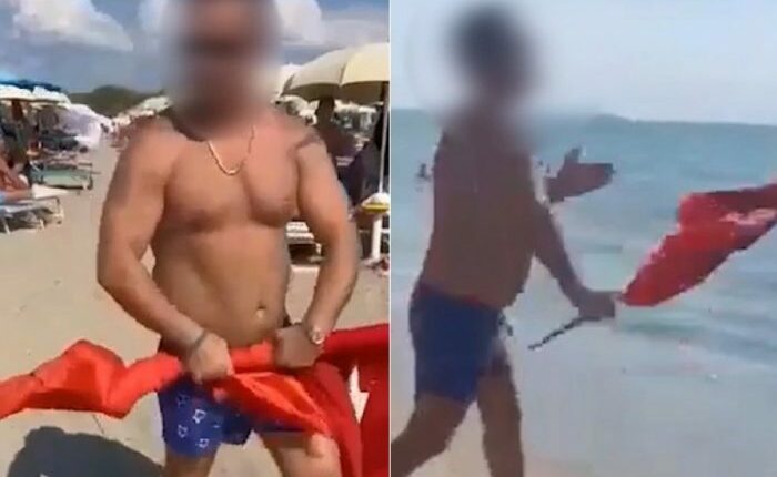Η τουρκική σημαία βρισκόταν σε πυργίσκο ναυαγοσώστη σε παραλία του Δυρραχίου. Ο παραθεριστής την άρπαξε και την πέταξε στη θάλασσα, με την ενέργειά του να καταγράφεται σε βίντεο.