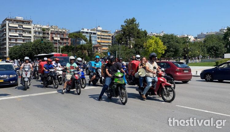 Μοτοπορεία πραγματοποιούν αυτήν την ώρα διανομείς φαγητού στη Θεσσαλονίκη.