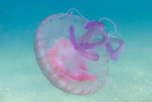 Στις θάλασσες της χώρας μας κυριαρχεί αυτή τη στιγμή η μωβ μέδουσα ή Pelagia noctiluca όπως είναι η επιστημονική της ονομασία.
