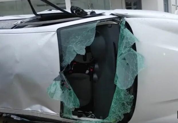 Μάλιστα, η μηχανή του οχήματος εκτινάχθηκε 20 μέτρα μακριά απ’ το αναποδογυρισμένο ΙΧ.