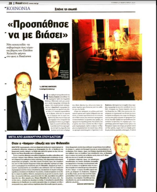 Η πιο σοβαρή καταγγελία κατά του Παύλου Χαϊκάλη κατατέθηκε την περασμένη Τρίτη στο Σωματείο Ελλήνων Ηθοποιών από μια γυναίκα η οποία περιγράφει απόπειρα βιασμού.
