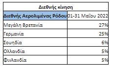 Καλύτερος αποδείχθηκε ο φετινός Μάιος σε σύγκριση με τον Μάιο του 2019, συνολικά για το Νότιο Αιγαίο κατά 4,5% με τα νησιά της Σαντορίνης και της Ρόδου να σημειώνουν τις μεγαλύτερες αυξήσεις (35% και 4,6% αντίστοιχα), ενώ η μέχρι στιγμής αποτίμηση των πρώτων μηνών της τουριστικής περιόδου, μέχρι και την 31η Μαΐου, παρουσιάζει άνοδο κατά 6,6% σε σχέση με τη χρονιά ρεκόρ του 2019.