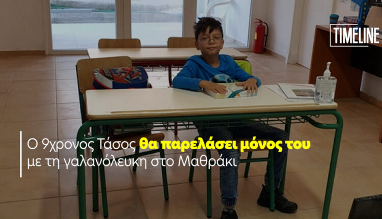Το όνειρο αυτό φέτος, μετά από 21 χρόνια, γίνεται πραγματικότητα από τον 9χρονο Τάσο, που είναι ο ένας και μοναδικός μαθητής του δημοτικού σχολείου του Μαθρακίου.