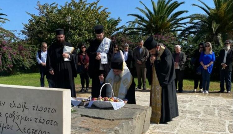 Το τρισάγιο τελέστηκε από τον Αρχιεπίσκοπο Κρήτης Ευγένιο, ο οποίος αποτίνοντας τιμές στον κορυφαίο Κρητικό λογοτέχνη γονάτισε μπροστά στο λιτό μνημείο του, προκαλώντας έντονη συγκίνηση στους παρισταμένους.