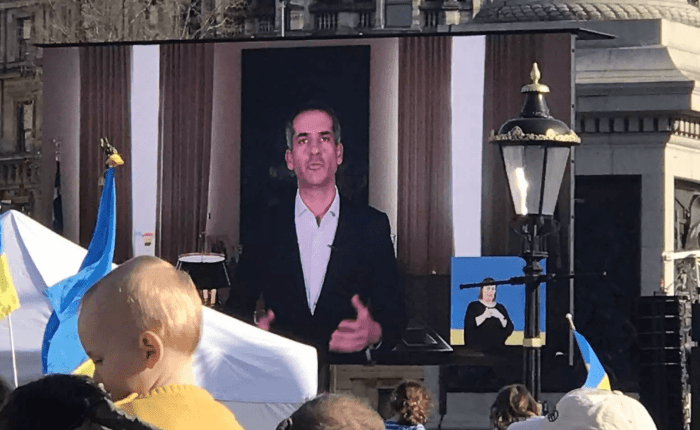 Παράλληλα, εξήρε τη γενναιότητα και τον ηρωισμό των Ουκρανών που όπως υπογράμμισε «αντιστάθηκαν για την κυριαρχία, την αυτοδιάθεση και τη δημοκρατία τους σ’ αυτή τη βίαιη επίθεση». Γι αυτό, όπως σημείωσε, οι Ουκρανοί «αγωνίζονται και για όλους μας. Για τον καθένας από εμάς σε όλο τον κόσμο». Έτσι, «από το Λονδίνο μέχρι την Αθήνα και ακόμη παραπέρα είμαστε όλοι στο πλευρό της Ουκρανίας», κατέληξε στη σύντομη παρέμβαση του ο δήμαρχος Αθηναίων.