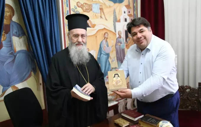 Ο πρέσβης επισκέφθηκε και τον μητροπολίτη Ναυπάκτου και Αγίου Βλασίου Ιερόθεο, στα Γραφεία της Ιεράς Μητροπόλεως. Είχαν για πολλή ώρα εποικοδομητική και φιλική συζήτηση για τους κοινούς φίλους, για τη σημασία της παραδόσεως στα σύγχρονα δεδομένα της εποχής μας, για τη σημασία του Οικουμενικού Πατριαρχείου στην ενότητα των Ορθοδόξων Εκκλησιών, για το ελληνικό φιλότιμο, για την εκδοτική δραστηριότητα του μητροπολίτη, ο οποίος έχει συγγράψει περίπου 100 βιβλία σε 25 γλώσσες, 25 τίτλοι βιβλίων είναι στην αγγλική γλώσσα, για την αμερικανική κοινωνία και τις ελευθερίες που την διακρίνουν κ.ά.