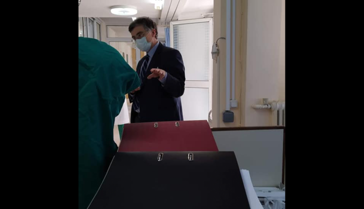 Οι φωτογραφίες που συνοδεύουν την ανάρτηση δείχνουν τον κ. Τσιόδρα να βρίσκεται στο νοσοκομείο λοιμωδων “Αγία Βαρβάρα” – το οποίο επαναλειτούργησε τις τελευταίες εβδομάδες – και να συντονίζει το νοσηλευτικό προσωπικό.