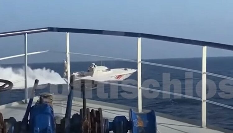 Και τα δύο σκάφη της γείτονος επιδόθηκαν για 4 ώρες σε ακραίους ελιγμούς με επίκεντρο το ελληνικό αλιευτικό σκάφος, αλλά και τα άλλα δύο σκάφη της Frontex και του Κ.Λ. Χίου, αποχωρώντας από το σημείο μετά από αρκετή ώρα και επιστρέφοντας στο λιμάνι του Τσεσμέ.