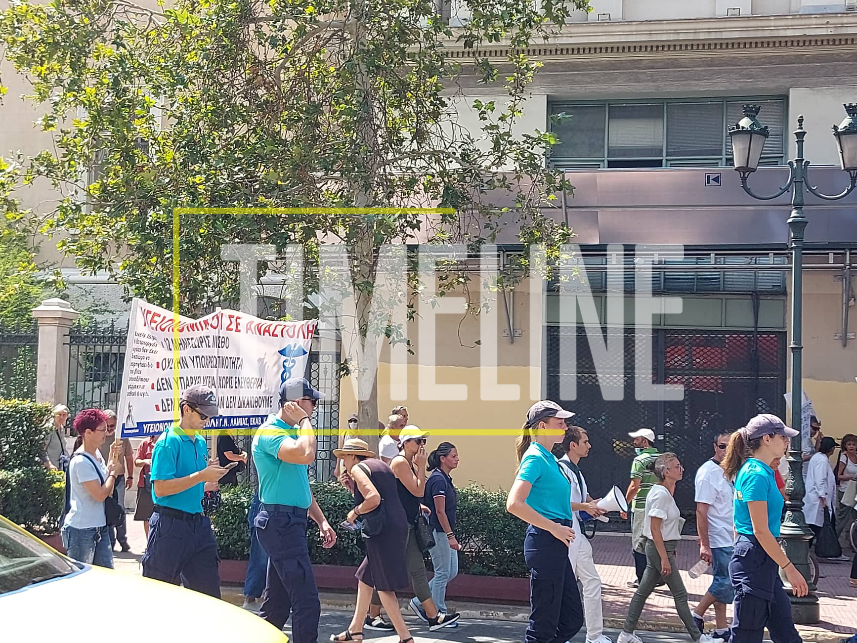 Συγκέντρωση πραγματοποίησαν σήμερα στο Σύνταγμα και στη συνέχεια έκαναν πορεία προς την Ομόνοια οι υγειονομικοί που βρίσκονται σε αναστολή.