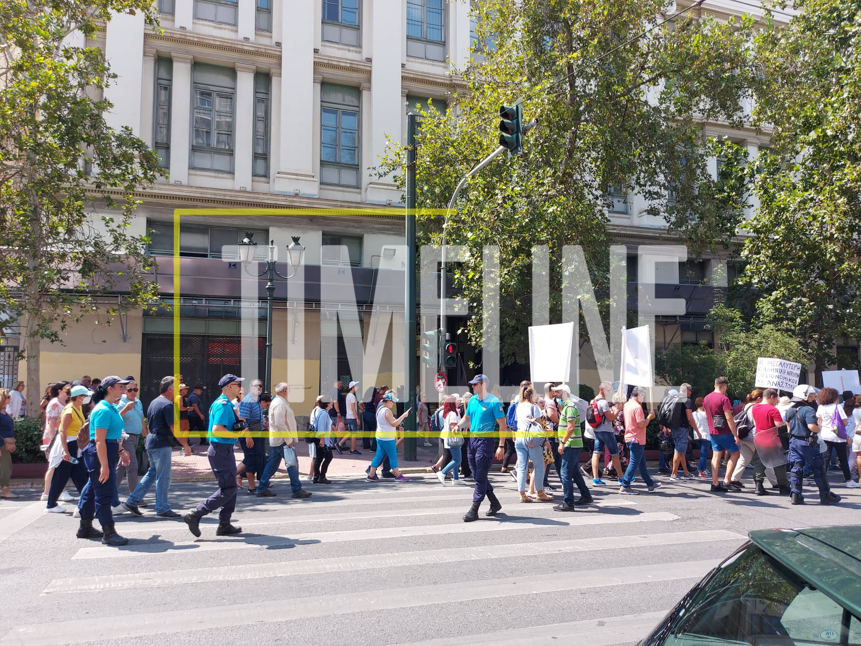 Οι υγειονομικοί ύστερα από τη συγκέντρωση και ακολουθώντας την οδό Πανεπιστημίου κατευθύνθηκαν προς την πλατεία Ομονοίας.