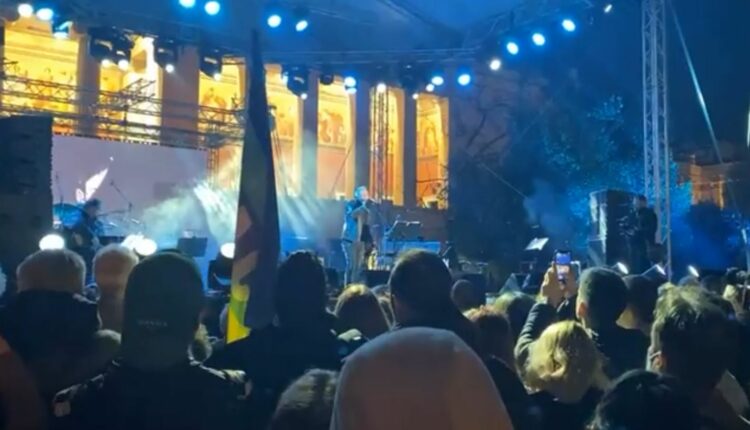 Στην αρχή της συναυλίας, μεγάλο βίντεο που είχε στηθεί στα Προπύλαια έδειχνε τα χαλάσματα του πολέμου ένα μήνα μετά τη ρωσική εισβολή.