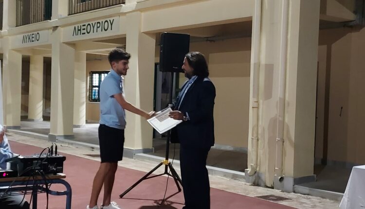 Ακολούθως παρέδωσε τις επιταγές της υποτροφίας στους αριστούχους και στη συνέχεια προβλήθηκε ένα βιντεάκι με την πορεία όλων των ετών από το σεισμό του 2014 έως την επιστροφή στο ιστορικό κτήριο του Λυκείου.