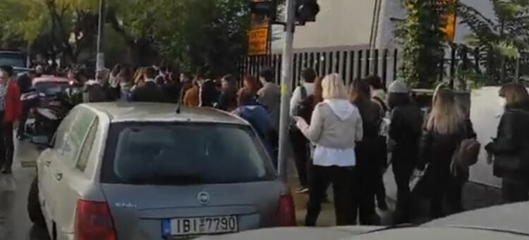 Φοιτητές περιμένουν καρτερικά για ώρα έξω από το Πανεπιστήμιο Μακεδονίας. Ο έλεγχος των πιστοποιητικών έφερε αυτές τις εικόνες…