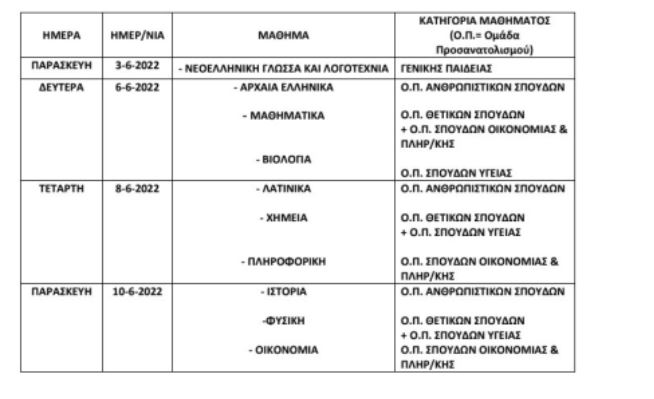 • Τη Δευτέρα 6/6 θα εξετασθούν τα Αρχαία, τα Μαθηματικά και η Βιολογία.