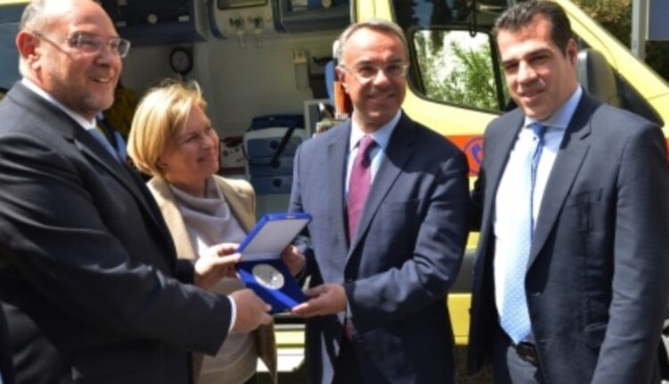 Η τελετή πραγματοποιήθηκε στην Κεντρική Υπηρεσία του ΕΚΑΒ Αθήνας, παρουσία του υπουργού Οικονομικών κ. Χρήστου Σταϊκούρα, του υπουργού Υγείας κ. Θάνου Πλεύρη, της αναπληρώτριας υπουργού Υγείας κα. Μίνας Γκάγκα και του προέδρου του ΕΚΑΒ κ. Νίκου Παπαευσταθίου.