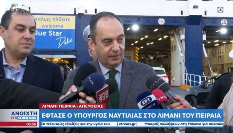 Το πρωί, ο υπουργός Ναυτιλίας Γιάννης Πλακιωτάκης, συνοδευόμενος από τον υφυπουργό Ναυτιλίας Κώστα Κατσαφάδο και τον Αρχηγό του Λιμενικού Σώματος – Ελληνικής Ακτοφυλακής, Αντιναύαρχο Γεώργιο Αλεξανδράκη, βρέθηκε στην πύλη Ε-7 στο λιμάνι του Πειραιά κατά τον απόπλου του επιβατηγού οχηματαγωγού πλοίου Blue star Delos που αναχώρησε για Πάρο-Νάξο-Θήρα με 2400 επιβάτες και 367 ΙΧ.
