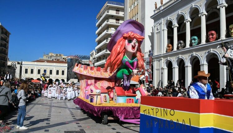 Πλήθος κόσμου έχει κατακλύσει από νωρίς το κέντρο της Πάτρας για μια καρναβαλική βόλτα σήμερα τελευταία Κυριακή του Καρναβαλιού.