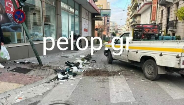 Πιο αναλυτικά, όπως αναφέρει το ρεπορτάζ του pelop.gr, το αυτοκίνητο ενώ κινούνταν στην κεντρική οδό της πόλης στο ρεύμα ανόδου, ξαφνικά, υπό αδιευκρίνιστες συνθήκες, στο ύψος της οδού Ιωάννου Βλάχου εξετράπη της πορείας του με αποτέλεσμα να προσκρούσει σε δίκυκλο, το οποίο με τη σειρά του κατέληξε σε βιτρίνα ανθοπωλείου, ενώ ξήλωσε ένα φανάρι και τελικά ακινητοποιήθηκε σε τοίχο καταστήματος.