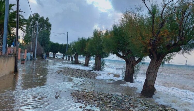 Ειδικότερα, η παραλιακή λεωφόρος από την Πλαζ μέχρι και την Παραλία Πατρών και τα Βραχνέικα, σε πολλά σημεία της έχει βυθιστεί κάτω από το νερό ή τα φερτά υλικά που «ξέβρασε» το κύμα.
