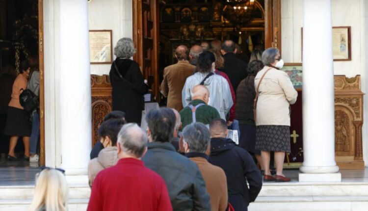 Με κατάνυξη και ευλάβεια, οι πιστοί, πολλοί από τους οποίους έχουν έρθει και από την επαρχία, σχηματίζουν ουρές για να προσκυνήσουν το ιερό κειμήλιο και σύμβολο των Ποντίων.