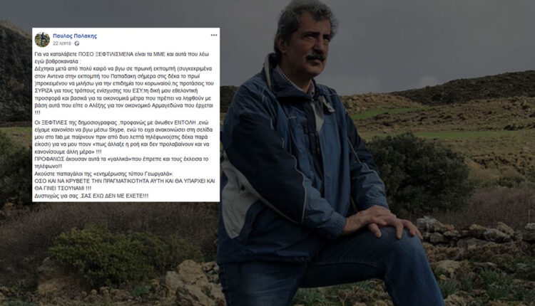 H ακύρωση μια εμφάνισης στον Ant1 προκάλεσε την έκρηξη του Παύλου Πολάκη.