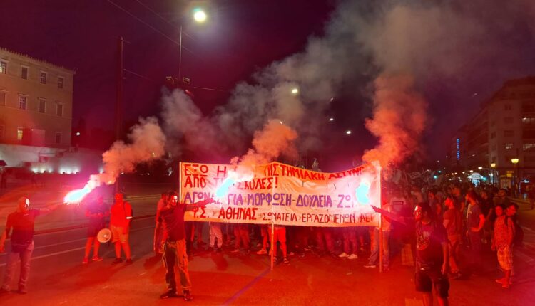 Οι φοιτητές διαμαρτύρονταν κατά της Πανεπιστημιακής Αστυνομίας στα ΑΕΙ και το συλλαλητήριο οργανώθηκε από τους φοιτητικούς συλλόγους των Πανεπιστημίων της Αθηνας.