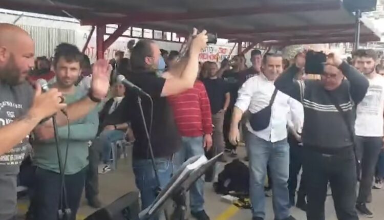 Αμέσως η τελευταία φράση του γίνεται σύνθημα από τους συγκεντρωμένους απεργούς και ηλεκτρίζει ακόμα περισσότερο την ήδη συγκινησιακά φορτισμένη ατμόσφαιρα: «Χωρίς εσένα γρανάζι δεν γυρνά, εργάτη μπορείς χωρίς αφεντικά» μέσα σε ξέφρενα χειροκροτήματα.