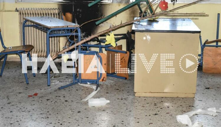 Καμένες κουρτίνες και εξοπλισμός, σπασμένα τζάμια, φθορές σχεδόν παντού σε δέκα αίθουσες, εικόνες ισοπέδωσης σε όλο το σχολείο.
