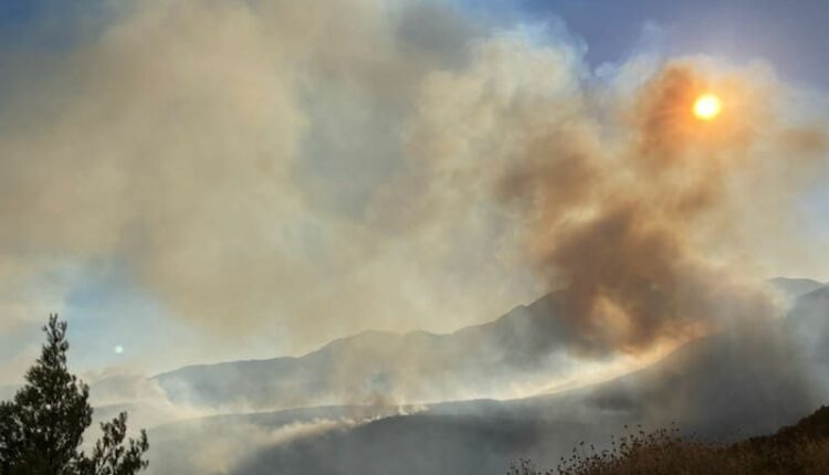 Η φωτιά, που ξέσπασε από άγνωστη αιτία λίγο μετά το μεσημέρι, έχει πάρει μεγάλες διαστάσεις και έχει αναπτυχθεί σε τρία μέτωπα, ενώ επιχειρούν 141 πυροσβέστες και 4 τμήματα πεζοπόρο.