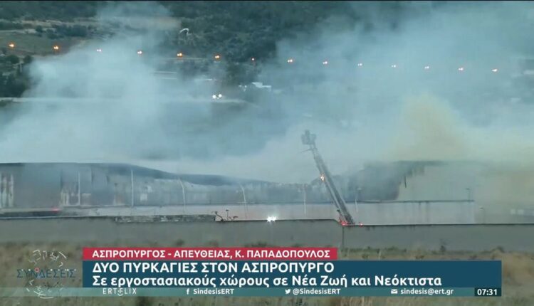 Φωτιά ξέσπασε σήμερα (25/1) γύρω στις 4 τα ξημερώματα σε εργοστασιακή μονάδα στην περιοχή Νεόκτιστων στον Ασπρόπυργο.