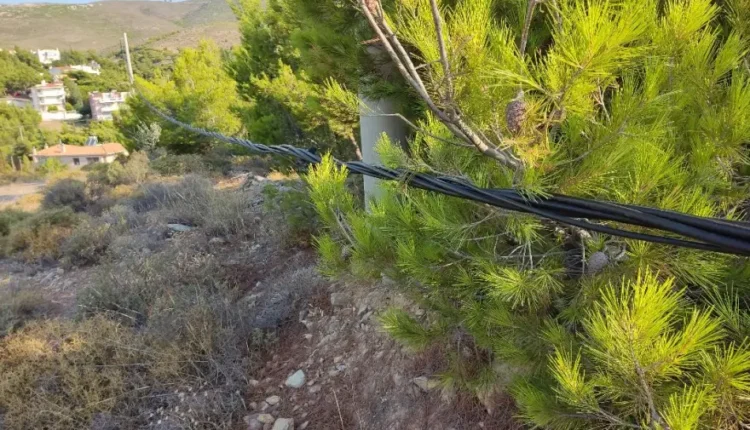 Και πιθανά η νέα πυρκαγιά στην Ανατολική Αττική θα ξεκινήσει από πάροδο της οδού Γλαύκα του οικισμού της Διώνης, καθώς εδώ και καιρό, πλεξούδα ηλεκτροφόρων καλωδίων της ΔΕΗ έχουν ξεκολλήσει από κολώνα και αιωρούνται μέσα σε πευκόφυτη περιοχή σε απόσταση λιγότερο από ένα μέτρο από το έδαφος.