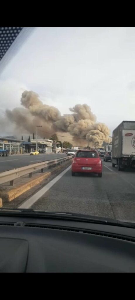H κατάσταση θεωρείται ιδιαίτερα επικίνδυνη καθώς σε πολύ κοντινή απόσταση βρίσκονται και τα διαλυστήρια. Μάλιστα, πριν από λίγο εστάλη και μήνυμα από το 112.