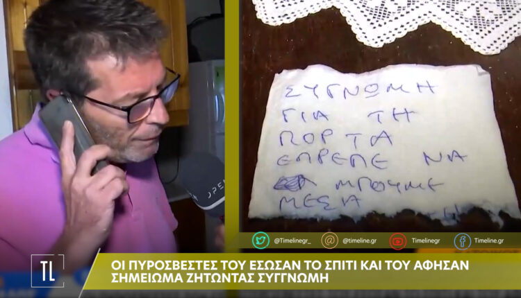 Μάλιστα, το συγκινητικό είναι ότι οι πυροσβέστες του άφησαν και σημείωμα, στο οποίο έγραφαν: “Συγνώμη για την πόρτα, έπρεπε να μπούμε μέσα”.