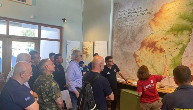 Νωρίς το πρωί όταν έφτασε στην περιοχή το κυβερνητικό κλιμάκιο υπό τον Υπουργό Κλιματικής Κρίσης και Πολιτικής Προστασίας Χρήστο Στυλιανίδη, πραγματοποιήθηκε σύσκεψη στο χωριό της Δαδιάς που έχει εκκενωθεί, στην οποία συμμετείχαν εκτός από τα μέλη του κλιμακίου, ο Περιφερειάρχης και ο Αντιπεριφερειάρχης Ανατολικής Μακεδονίας και Θράκης, ο Δήμαρχος Σουφλίου, εκπρόσωποι των Δασικών Υπηρεσιών, στελέχη της Αστυνομίας, του Στρατού, αξιωματικοί του ΠΣ, στελεχη Πολιτικής Προστασίας από την Περιφέρεια και το Δήμο Σουφλίου, μαζί με εκπροσώπους του φορέα διαχείρισης Εθνικού Πάρκου Δαδιάς.