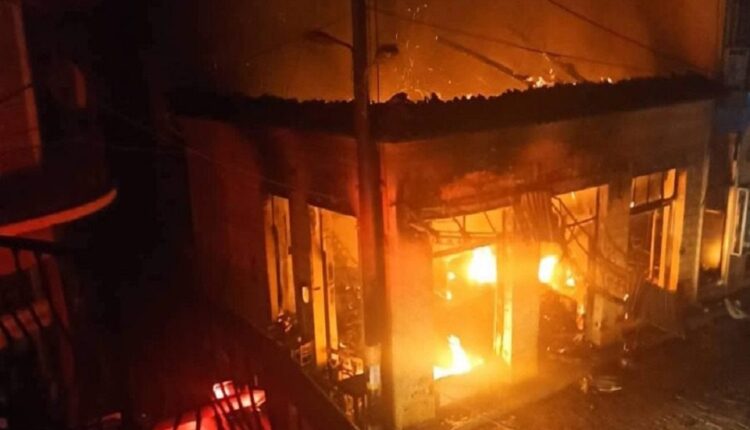 Στη συνέχεια «εισέβαλε» με το αγροτικό αυτοκίνητό του μέσα στο μαγαζί ειδών υπόδησης και ένδυσης του αδελφού του μεταφέροντας δύο φιάλες υγραερίου. Έβαλε φωτιά στο μαγαζί, κάηκε μέσα σε αυτό, ενώ η ανατίναξη των φιαλών διέλυσε τα πάντα.