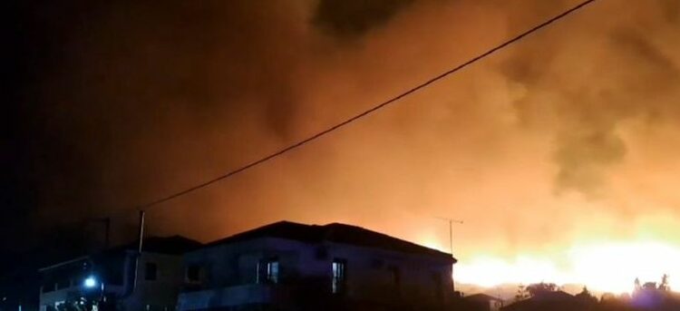 Σύμφωνα με την πυροσβεστική η φωτια ειναι κοντά σε οικισμό, ωστόσο δεν απειλείται άμεσα.