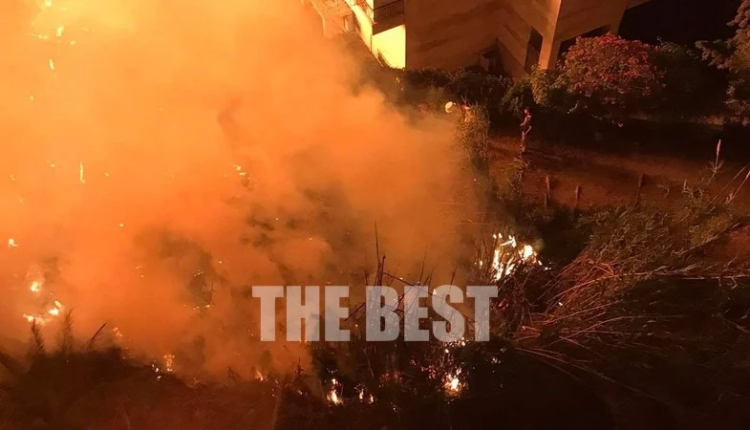 Η φωτιά που εκδηλώθηκε γύρω στις 10 το βράδυ, μια ανάσα από τα σπίτια και το σχολείο ξέσπασε σε ακάλυπτο χώρο με καλαμιές και ξερά χόρτα, μεταξύ πέντε πολυκατοικιών.