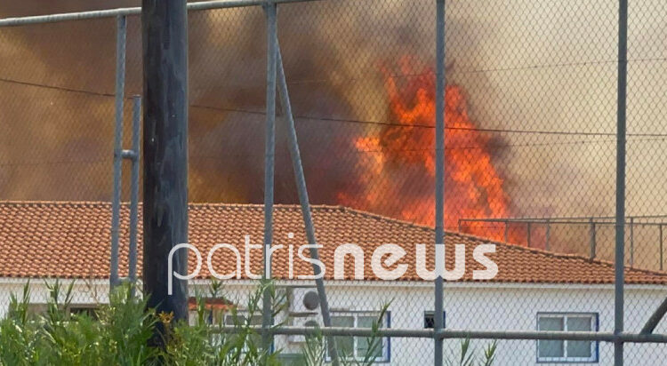 Η φωτιά εξαιτίας των ισχυρών ανέμων που πνέουν στην περιοχή, έχει πάρει ανησυχητικές διαστάσεις, ενώ οι φλόγες είναι μια ανάσα από τα σπίτια.