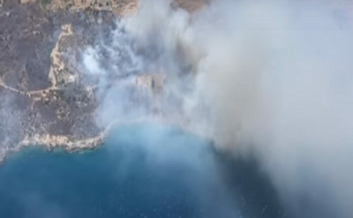 Η φωτιά ακόμα δεν έχει τεθεί υπό έλεγχο καθώς στην περιοχή εξακολουθούν να πνέουν ισχυροί άνεμοι.