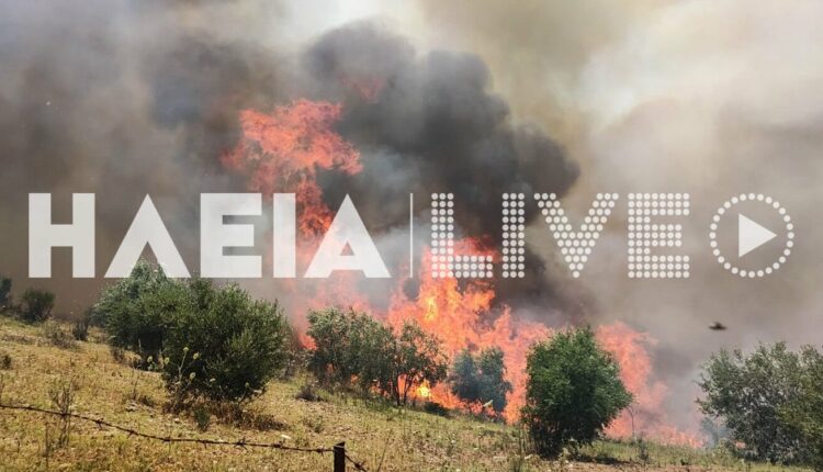 Σε πλήρη εξέλιξη βρίσκεται το πύρινο μέτωπο στην Ηλεία, το οποίο ξέσπασε νωρίς το μεσημέρι της Πέμπτης (21/07/2022).