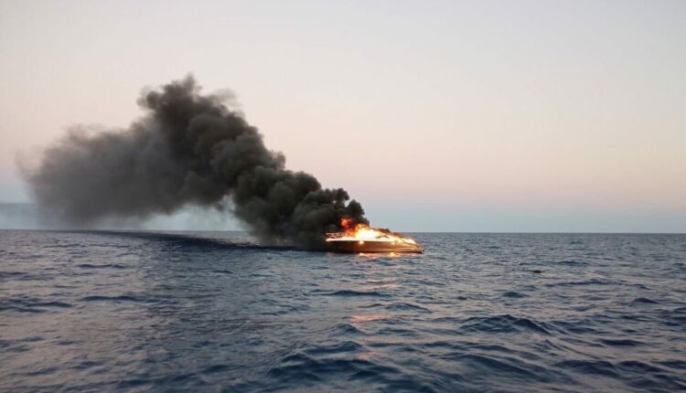 Στις φλόγες τυλίχθηκε σκάφος που έπλεε στη θαλάσσια περιοχή Κατελειού στα νότια του νησιού της Κεφαλονιάς.