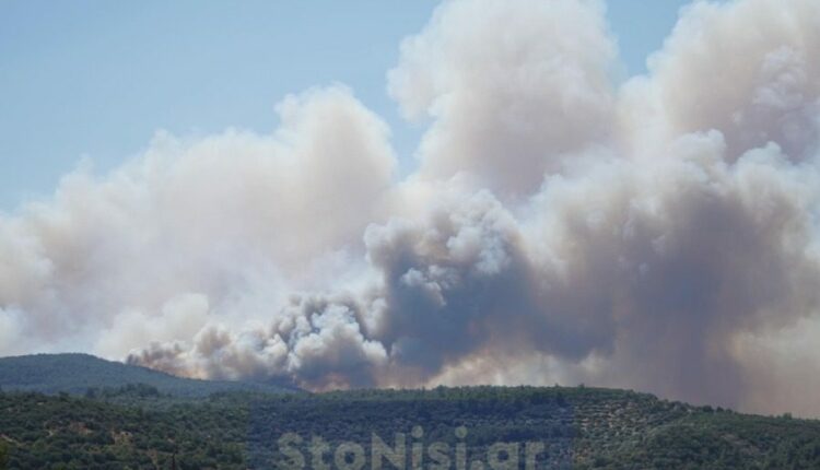 Σύμφωνα με τις τελευταίες πληροφορίες στη νοτιοανατολική πλευρά η πυρκαγιά έχει οριοθετηθεί, ωστόσο το μέτωπο δεν έχει σβήσει.