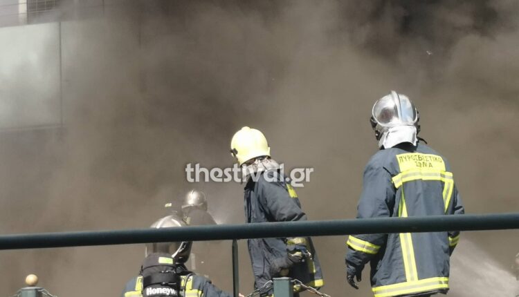 Τριάντα πυροσβέστες με έντεκα οχήματα και τη συνδρομή υδροφόρας του δήμου Καλαμαριάς έδωσαν μάχη για να περιορίσουν τις φλόγες προκειμένου να μην επεκταθεί η φωτιά σε διπλανές επιχειρήσεις, ενώ διακόπηκε και η παροχή ηλεκτρικού ρεύματος, για λόγους ασφάλειας.