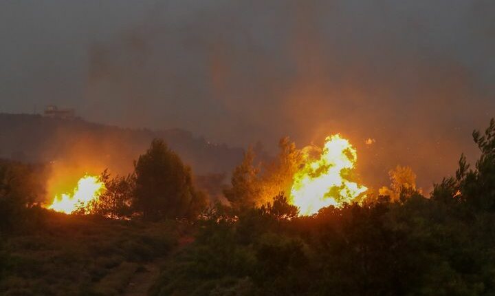 Παράλληλα, οι ισχυρές επίγειες πυροσβεστικές δυνάμεις επιχειρούσαν καθ΄ όλη τη διάρκεια της νύχτας και συνεχίζουν να επιχειρούν, ώστε να περιορίσουν το πύρινο μέτωπο.