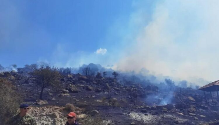Στο σημείο επιχειρούν πυροσβεστικές δυνάμεις, συνεργεία της αυτοδιοίκησης και εθελοντές.